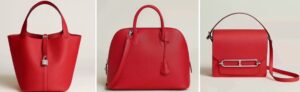 実際のバッグや小物で見ると、ルージュ・ラデューはKellyやConstanceのアクセントカラーとして人気が高く、Picotin, Roulis Miniなどにも映えます。