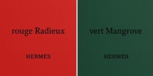 春夏2025コレクションでエルメスが発表した注目の新色、ルージュ・ラデュー(Rouge Radieux)とヴェール・マングローブ(Vert Mangrove)