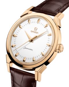 シーマスターは1948年に誕生し、防水性と耐久性を備えた実用時計としての地位を築いてきました。今回の記念モデルは、特に1950〜60年代にかけて製造されたクラシックなシーマスターの意匠を色濃く受け継いでいます。「ドッグレッグラグ」や「六角形リューズ」など、当時の美学を現代に蘇らせたデザインが特徴です。