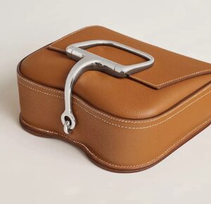 バッグのフラップ部分に配された金具は「ヴァンドン」と呼ばれ、半馬具を思わせる特徴的なデザイン。控えめでありながら個性を放つその金具は、バッグ全体の印象を引き締め、洗練された印象を与えてくれます。開閉のしやすさだけでなく、エルメスらしい機能美も感じさせるディテールです。