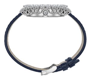 その他仕様:ブルーアリゲーター・ストラップ、ピンバックル(18Kホワイトゴールド)、30m防水、シースルーサファイアケースバック