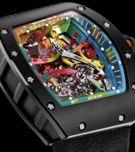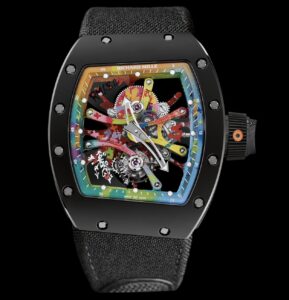 また、リシャール・ミルの技術力が活かされたトゥールビヨン機構を搭載。カーボンTPTケースとの組み合わせにより、アートと高度な時計製造技術が融合した唯一無二のタイムピースとなっています。