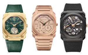 「オクト」は、Bulgariが2012年に発表したラグジュアリースポーツウォッチシリーズで、特徴的な“八角形”のケースデザインからその名が付けられました。ローマ建築にインスピレーションを得た幾何学的造形と、薄型化を追求した高性能ムーブメントによって、Bulgariの時計づくりにおける技術革新の象徴的存在となっています。特に「オクト フィニッシモ」シリーズは、世界最薄クラスのムーブメントやケース厚で数々の記録を打ち立て、現代的かつ洗練されたデザインで多くの賞を受賞してきました。その存在感は、スイス時計界の中でも異彩を放ち続けています。