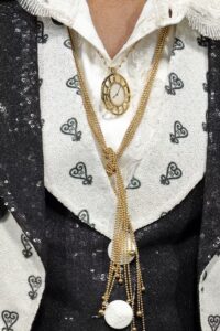 2025年のメットガラでは、ポケットウォッチの復活が注目されました。TikTokのスター、カビー・ラメは、20個以上のポケットウォッチをベストに装着し、話題を集めました。また、ジェナ・オルテガは、1914年製の14金のホイヤー・ポケット・クロノグラフをアクセサリーとして取り入れ、ヴィンテージと現代の融合を体現しました。
