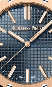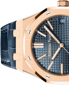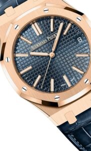 • ストラップ:ブルーのアリゲーターストラップ+ピンクゴールド製APフォールディングクラスプ