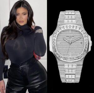 カイリー・ジェンナーは実業家でインフルエンサー、化粧品ブランド「Kylie Cosmetics」の創設者。超富裕層のライフスタイルとファッション感覚で圧倒的な注目を集めています。彼女はパテック 5719/10G‑010 を含む複数のノーチラスを所有しており、この最高峰モデルは「彼女のコレクションの “冠”」とも評されています。