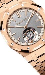 Audemars Piguet(オーデマ・ピゲ)の中でも、特に注目を集めている「ロイヤルオーク セルフワインディング フライング トゥールビヨン 41mm」シリーズ。その中でもリファレンス26730OR.OO.1320OR.05(ローズゴールド)と26730ST.OO.1320ST.05(ステンレススチール)は、デザイン・素材・印象の異なる2本として時計ファンの間で話題です。本記事では、両モデルの共通点と違い、そしてどちらがどんなユーザーに向いているのかをわかりやすく解説します。