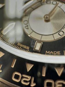 この王冠マークは、サファイアクリスタル風防の6時の位置にレーザーで刻印されています。
