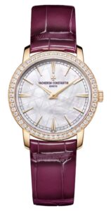 Ref. 1405T/000R-H061は、33mmの18Kピンクゴールドケースに54個のラウンドカットダイヤモンド(約0.87カラット)をセッティングした、繊細でフェミニンなモデルです。ピンクのマザーオブパール文字盤には、マルタ十字をモチーフにした270周年記念の特別な装飾が施され、上品な輝きを放ちます。コンパクトなサイズながらも存在感のあるデザインが特徴です。