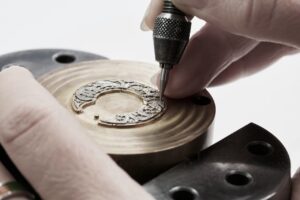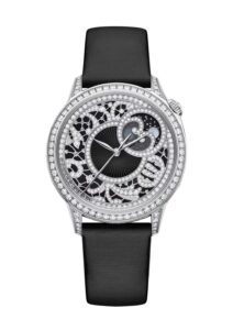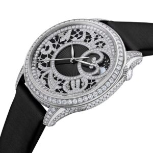 ダイヤル:「Buranoレース」に着想を得た、ブラックのタペストリー模様の文字盤。細密な彫刻と複数の技法によって装飾され、合計約4カラット超のダイヤモンドが配されています。