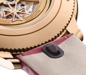 ケース:35 mm、18K 5Nピンクゴールド、透明サファイアバック付き。