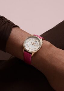 Égérie(エジェリー)は、2020年にヴァシュロン・コンスタンタンが発表した“ハイ・クチュール”に触発された女性向けコレクションです。中心を少しずらしたディスプレイや、手工芸的な“プリーツ”風ダイヤルなど、視覚的にも技術的にも洗練されたデザインが特徴です。