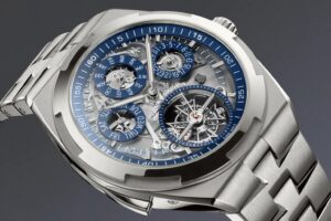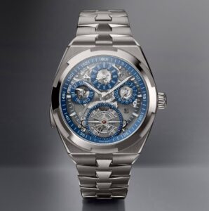 ヴァシュロン・コンスタンタンの「オーヴァーシーズ・グランドコンプリケーション・オープンフェイス」は、スポーツウォッチと高級複雑機構の融合を実現した革新的なタイムピースです。ミニット・リピーター、パーペチュアルカレンダー、トゥールビヨンを搭載し、スケルトン仕様の文字盤からは精緻なムーブメントが覗きます。グレード5チタン製のケースとブレスレットは軽量でありながら堅牢性を保ち、日常使いにも適しています。このモデルは、ヴァシュロン・コンスタンタンの270周年を記念する限定生産品であり、同ブランドの技術力と美学の結晶といえるでしょう。