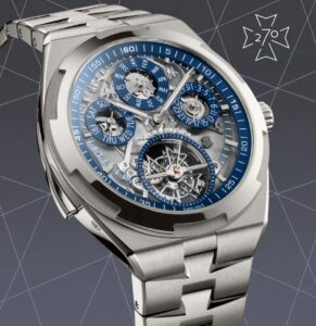 「オーヴァーシーズ」コレクション初となるミニット・リピーターを搭載し、時間を音で知らせる機能を備えています。また、パーペチュアルカレンダーは2100年まで修正不要で、日付、曜日、月、閏年を自動で表示します。6時位置にはトゥールビヨンが配置され、重力の影響を最小限に抑え、精度を向上させています。