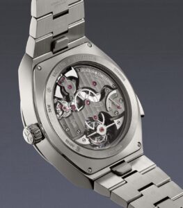 1-1. グレード5チタン製ケースとスケルトン文字盤