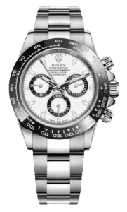 Ref. 116500LNは、2016年に登場したステンレススチール製のデイトナで、ホワイトダイヤルとブラックのセラクロムベゼルが特徴です。この組み合わせは、視認性とデザイン性を兼ね備えており、スポーティーでありながらも洗練された印象を与えます。ムーブメントには、ロレックス自社製のCal. 4130を搭載し、高い精度と信頼性を実現しています。