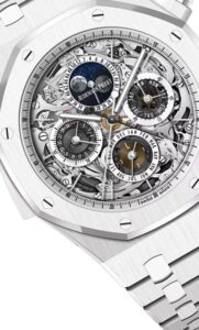 両モデルには、オーデマ ピゲの自社製キャリバー2885が搭載されています。この自動巻きムーブメントは、ミニッツリピーター、永久カレンダー、スプリットセコンドクロノグラフ、ムーンフェイズなど、多彩な機能を備えています。648個の部品から構成され、パワーリザーブは約45時間です。これらの複雑機構は、ル・ブラッシュにあるオーデマ ピゲのグランドコンプリカシオン工房で、熟練した時計職人によって手作業で組み立てられています。