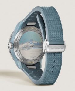 さらに、ベゼルやケースサイドにはヴィンソン・マシフ山の輪郭を発光素材で描き、探検のスピリットを視覚化。ブルーグリーンのラバーストラップは極寒地にも対応可能な仕様となっており、機能美と審美性が見事に融合しています。