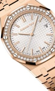 • ロイヤルオークのデザイン進化を象徴する37mmサイズのピンクゴールドケース