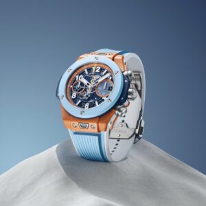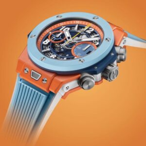 真夏の陽光をイメージさせるオレンジケースと澄みきったスカイブルーのベゼルをまとった、ウブロの「ビッグ・バン ウニコ サマー 2025」(Ref. 441.ES.5199.RX)が登場。限られた100本のリミテッドエディションとして発表され、その軽快なカラーリングと同ブランド自慢のセラミック素材、そしてブランド自製キャリバーHUB1280 UNICOを搭載したスペックは、まさに夏の手元にふさわしい1本です。本記事ではそのデザイン、技術、背景を精査しながら詳しくご紹介します。