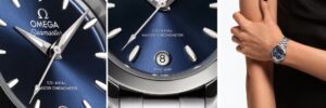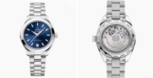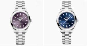 2025年、オメガは30 mm径のSeamaster Aqua Terraシリーズに新たな息吹を吹き込みました。小径ながらも高性能な キャリバー8750 を搭載し、防水150 m&耐磁性能を備えた本格仕様です。中でも Ref. 220.10.30.20.03.001(ブルー文字盤) と 220.10.30.20.10.002(ラベンダー文字盤) は色違いでありながら同じ高スペックを実現し、男女問わず着けられるユニセックスモデルとなっています。