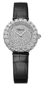 両モデルとも、26mm径、厚さ9mmのエシカルな18Kホワイトゴールド製ケースを採用。手巻きムーブメント「CHOPARD 10.01‑C」を内蔵し、約45時間パワーリザーブを確保しています。ベゼルには2.23~2.35カラットのブリリアントカットダイヤモンドをクラウンセッティングで配し、光の加減によって煌めきが際立ちます。防水性能は30m、風防はサファイアクリスタル、裏はシースルーバック仕様です