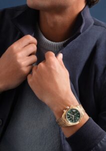 緑ラッカー文字盤にサンバースト仕上げと深みのある色合い