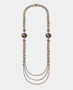 このネックレスウォッチの最大の魅力は、ライオンのモチーフと素材の美しさにあります。2つのライオンヘッドはブラックラッカーとブラックオニキスで彩られ、目にはダイヤモンドが施されており、シャネルらしい繊細なディテールが光ります。