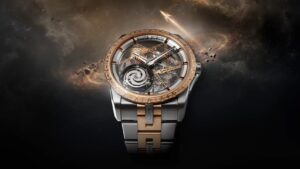 ロジェ・デュブイとDr. Wooのコラボはこれで3作目。Episode IIIは、ホイール状の“Tourbillon Galaxy”(ホイール銀河、=M51a渦巻銀河、通称ホイール銀河)をテーマに、宇宙探査の物語を腕時計として表現したものです。