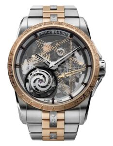 ロジェ・デュブイとL.A.の人気タトゥーアーティスト、Dr. Wooが再び手を組んだ“Hyper Horology”の極致。2025年新作、エクスカリバー モノトゥールビヨンドクター・ウー Episode III(Ref. DBEX1125)は、全世界28本限定。ホイール状のトゥールビヨンやピンクゴールド&チタニウム素材、そして“トゥールビヨン銀河”をモチーフにしたデザインが特徴の、宇宙的な物語を纏った芸術的タイムピースです。