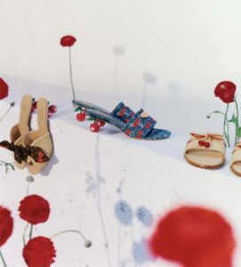 フットウェアでは、チェリーヒールが特徴的なLily Muleや、デニム素材のスニーカー、サンダルなどがラインナップ。さらに、チェリーモチーフの扇子やデッキチェアなど、夏のリゾートシーンにぴったりのアイテムも登場し、ライフスタイル全体を彩ります。