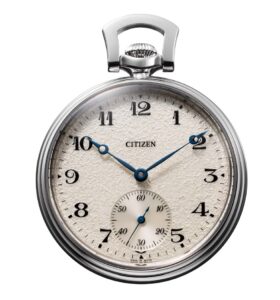 2024年、シチズンはブランド創業100周年を記念して、100本のみの特別な懐中時計「Ref. NC2990‑94A」を発表しました。このモデルは、1924年に誕生した初代シチズンウォッチを現代に蘇らせるというコンセプトで制作され、CITIZENブランドの原点と技術革新の融合を象徴しています。