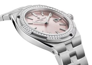 4600V/200A-B980は34.5 mm径のスティールケースに、中央秒針、3時位置に日付表示、ブルーラッカーの文字盤を備えており4605V/200A‑B971は35 mm径、同様のムーブメントながら、ピンクダイヤルと90個のラウンドカットダイヤモンドを配したベゼルが特徴です