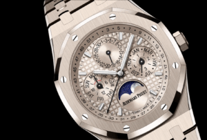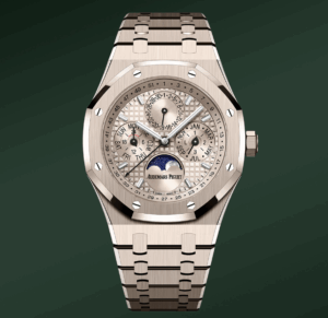 スイスの名門ブランド Audemars Piguet(オーデマ・ピゲ)が創業150周年を迎える2025年、その節目として発表した新世代永久カレンダーモデル。中でも 18Kサンドゴールド素材をまとった Ref. 26674SG.OO.1320SG.01 は、ムーブメントに自社製「キャリバー 7138」を搭載し、41 mmケース/厚さ9.5 mm、防水50 mという装着性も兼ね備えた意欲作です。永久カレンダー機構をリューズのみで調整できるという革新性を備え、ラグジュアリーかつ実用性の高いスポーツウォッチとして注目を集めています。本記事では、その技術的背景、仕様、記念モデルとしての位置づけ、購入時のポイントなどを、時計ファンの視点で詳しく解説します。