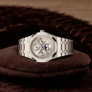 「Ref. 26674SG.OO.1320SG.01」は、Audemars Piguetの創業150周年を記念して登場した、18Kサンドゴールド仕様のロイヤル オーク・パーペチュアルカレンダーです。41 mmケース/9.5 mm厚という装着性に加え、新ムーブメント「キャリバー 7138」による操作性・技術的革新、そしてラグジュアリー素材という三重の魅力を兼ね備えています。特に記念モデルという背景を持つことで、コレクター価値・所有満足度ともに高いと言えるでしょう。購入を検討する際には、素材・刻印仕様・付属品・状態・信頼できる購入ルートという点を慎重に確認することをおすすめします。