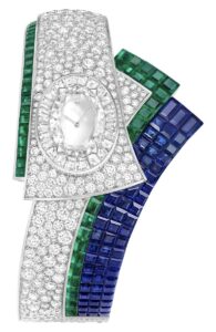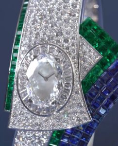 ヴァン クリーフ&アーペルが2025年に発表した新作「リュバン ミステリユー」は、リボンをモチーフにしたハイジュエリーウォッチです。リボンがふわりと手首を巻くようなデザインは、ジュエリーと時計が融合する同ブランドならではの世界観を体現しています。中心には3.72カラットのDIFグレード・オーバルカットダイヤモンドが配され、まるで光を集めたかのように輝きます。時計の文字盤はこのダイヤモンドの下に巧妙に隠されており、芸術品のような存在感を放っています。