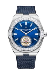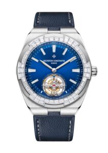 Vacheron Constantin Overseas Tourbillon High Jewellery 6007V/210G‑B955は、42.5 mm径×10.39 mm厚の18Kホワイトゴールドケースに、60個のバゲットカットダイヤモンドをあしらったベゼルを備える豪華モデルです。ムーブメントは自動巻きキャリバー2160(厚さ5.65 mm、80時間パワーリザーブ)で、トゥールビヨン&スモールセコンドを搭載 。ストラップはホワイトゴールドブレスレットに加え、レザーとゴムも付属、交換可能 。