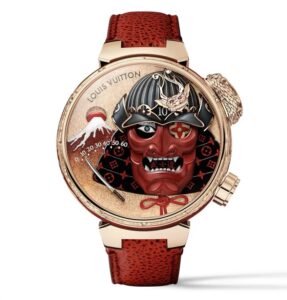 このモデルは、ルイ・ヴィトンが日本文化へ敬意を表した逸品です。「武士道」という精神をテーマに、装飾から動きに至るまで、日本の伝統美を現代の機械技術で再解釈しています。海外ブランドがここまで深く日本文化に根ざした時計を製作したことは稀であり、その意義も極めて大きいといえます。