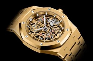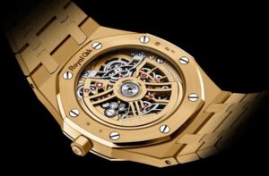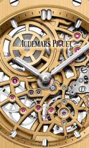 スケルトン構造と18Kゴールドの豪華さ、機械美と高級感を楽しめる逸品。