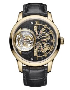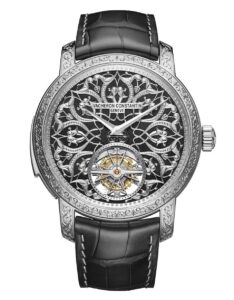 「レ・キャビノティエ・ミニットリピーター・トゥールビヨン – アラベスク様式への賛辞 –」は、マラソン美術の特徴であるアラベスク模様を取り入れたモデルです。 ケースや文字盤には、繊細で流れるような植物モチーフの彫刻が施され、ミサ建築の装飾美を再現しています。