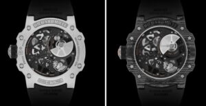 いずれもサテン&ポリッシュ複合仕上げ、チタン製スプラインスクリューなど高度な表面処理を施し、リシャール・ミルならではの高級感と耐久性を実現しています。