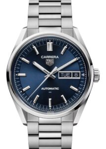タグ・ホイヤーのシグネチャーカラーであるブルーのサンレイ仕上げダイヤルが特徴です。この深みのあるブルーは、光の角度によって表情を変え、見る者を魅了します。ロジウムプレートの針とインデックスが、ダイヤルの美しさを一層引き立てます。ケースバックには、ブランドのモータースポーツへの情熱を象徴する「ビクトリーリース」が刻まれています。このモデルは、スポーティさとエレガンスを兼ね備えた一本として、多くのファンに支持されています。