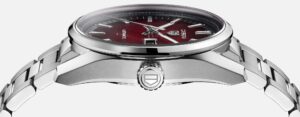 スモーキーなレッドのオパーリンダイヤルが印象的なモデルです。この独特な色合いは、他の時計とは一線を画し、個性を求めるユーザーに最適です。ブラックのフランジがダイヤルの深みを増し、全体のデザインに奥行きを与えています。ロジウムプレートの針とインデックスが、ダイヤルの美しさを際立たせ、視認性も高めています。このモデルも、ケースバックに「ビクトリーリース」が刻まれ、ブランドの伝統を感じさせる仕上がりとなっています。