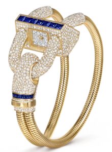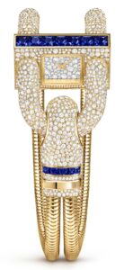ヴァン クリーフ&アーペルの2025年新作「カデナ ウォッチ」Ref. VCARPEU600は、1935年に誕生したアイコニックなデザインを現代的に再解釈した逸品です。18Kイエローゴールドのブレスレットに、スノーセッティングのダイヤモンドとプリンセスカットのサファイアがあしらわれ、ジュエリーと時計の融合を体現しています。価格は28,512,000円(税込)で、2025年11月の発売が予定されています。