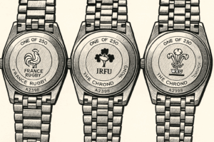 2025年、ブライトリングはラグビーの名門大会「シックス・ネーションズ」に敬意を表し、特別な限定モデル「クロノマット 32 シックス・ネーションズ」を発表しました。このコレクションは、フランス、アイルランド、ウェールズの各国を象徴するデザインが施され、各国のラグビーファンや時計愛好家にとって魅力的なアイテムとなっています。