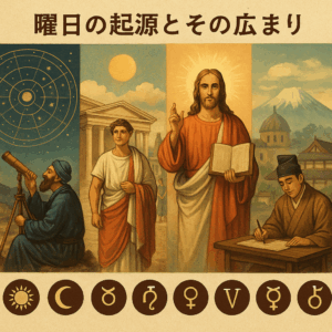 曜日の起源は、古代バビロニアの天体観測に始まり、古代ローマでの命名法や宗教的な慣習を経て、世界中に広まりました。日本でも、平安時代にその概念が伝わり、明治時代に正式に採用されることで、現在の形となりました。私たちが日常的に使っている曜日には、古代の人々の知恵と文化が息づいているのです。