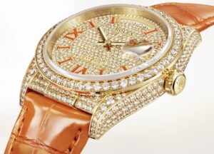ダイヤル:450 個のブリリアントカット・ダイヤモンド&オレンジ・ローマンインデックス
