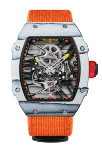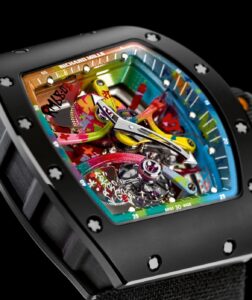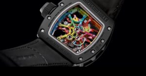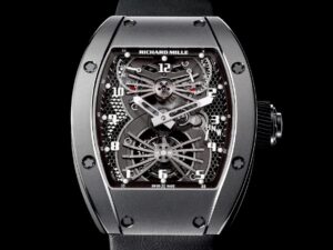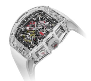 リシャール・ミルの時計に使われる素材は、時計業界の常識を覆しました。 カーボンTPT®やチタン、サファイアクリスタルなどの最先端素材を使用することで、驚異的な軽さと耐久性を実現しています。