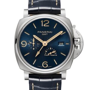 パワーリザーブ指示ーは文字盤上部に配置され、残りの動力を一目で確認できます。このモデルは、パネライの伝統的なデザインを継承しつつ、現代のニーズに応える機能を備えています。