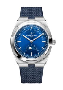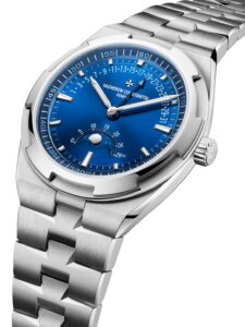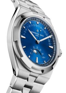 「4000V/210A‑B911」は直径41mmのステンレススチールケースに、サンバースト仕上げのブルーダイアルを備えています。特徴的なムーンフェイズ表示とレトログラード日付を搭載し、その詩的な天体描写は122年間に一度の調整で済む高精度が魅力です。